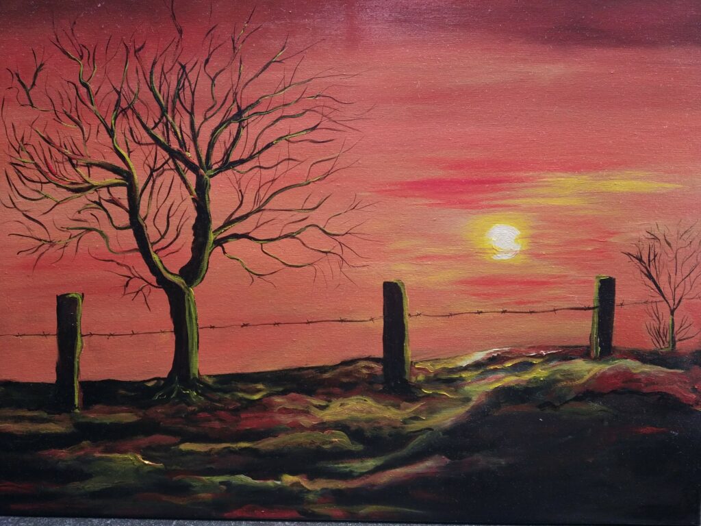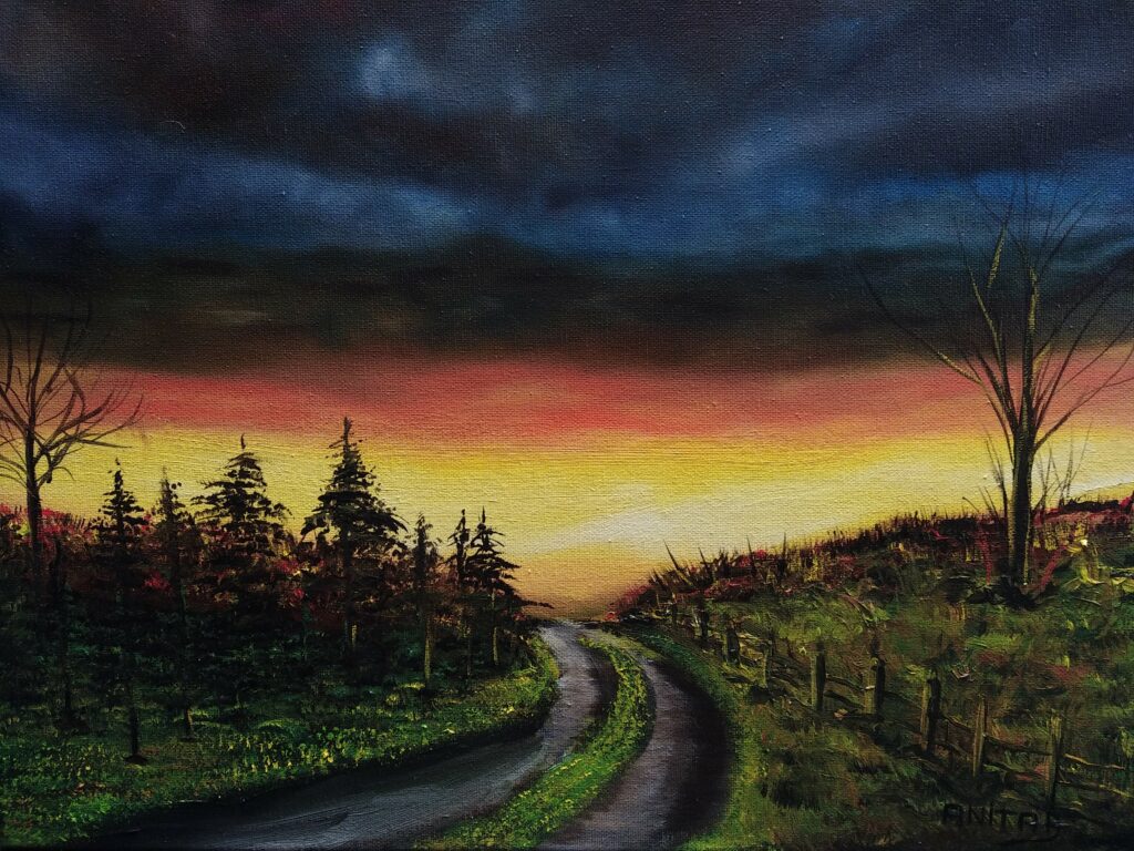 Cependant, après un diplôme obtenu à l’Académie des Arts Mosans à Hastière, je continue mon écolage avec plaisir et assiduité. Je peux enfin m’exprimer et faire ressortir mes émotions dans mes toiles. Les paysages de nos campagnes, ciels et horizons tortueux sont des thèmes favoris.