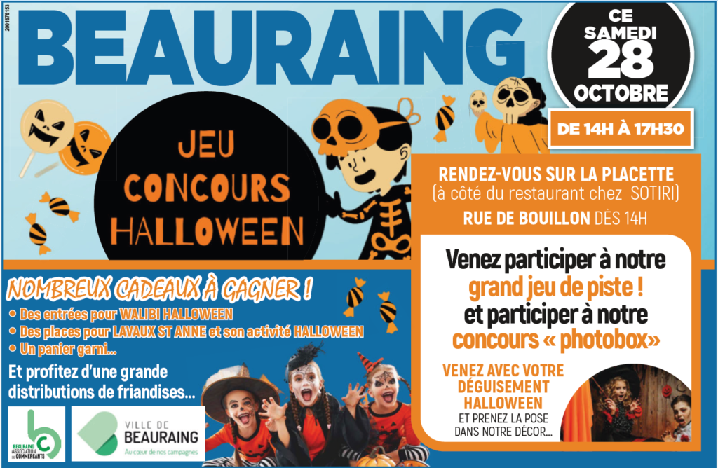 Concours : Soyez déguisé et prenez votre plus belle pose effrayante sur la placette ! La photo la plus likée sur la page Facebook des commerçants beaurinois gagne ![]()