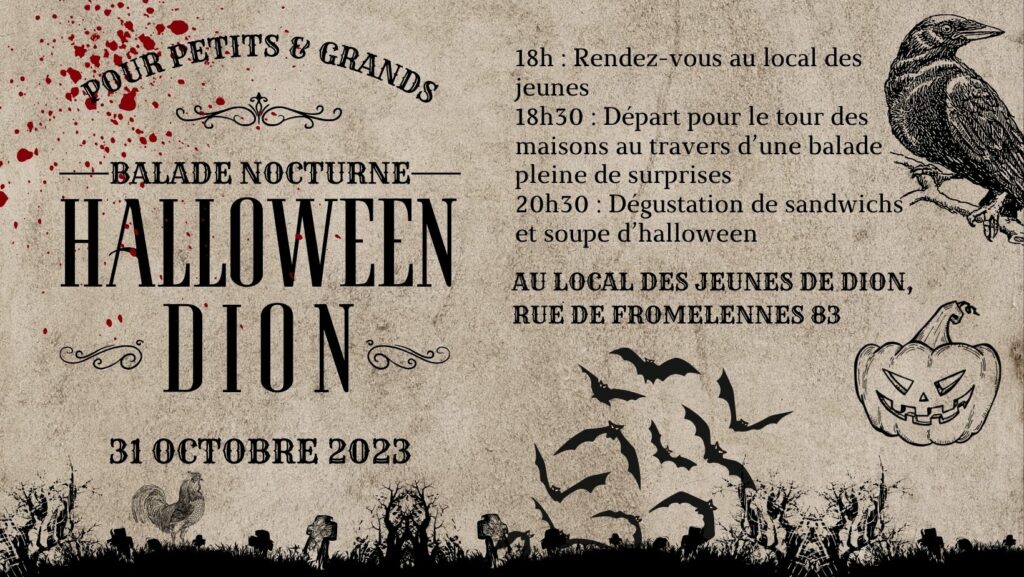 Les fantômes, sorcières et monstres de la Jeunesse Dionaise vous donnent rendez-vous le 31 octobre pour une balade d’Halloween terrifiante ! ![]()