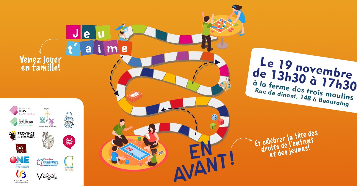 Cette année encore, « Jeu t’aime » et « En avant » se rassemblent à Beauraing pour cette Fête du temps en famille et donner lieu à une après-midi durant laquelle le temps en famille sera au centre des préoccupations.
