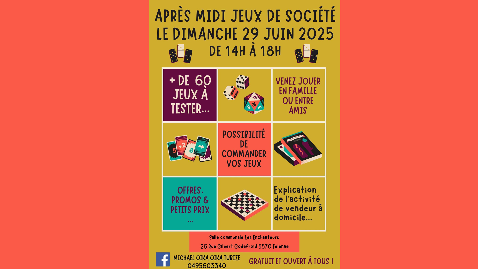 Le dimanche 29 juin, rendez-vous de 14h à 18h à la salle communale Les Enchanteurs Felenne pour une après-midi jeux de société.