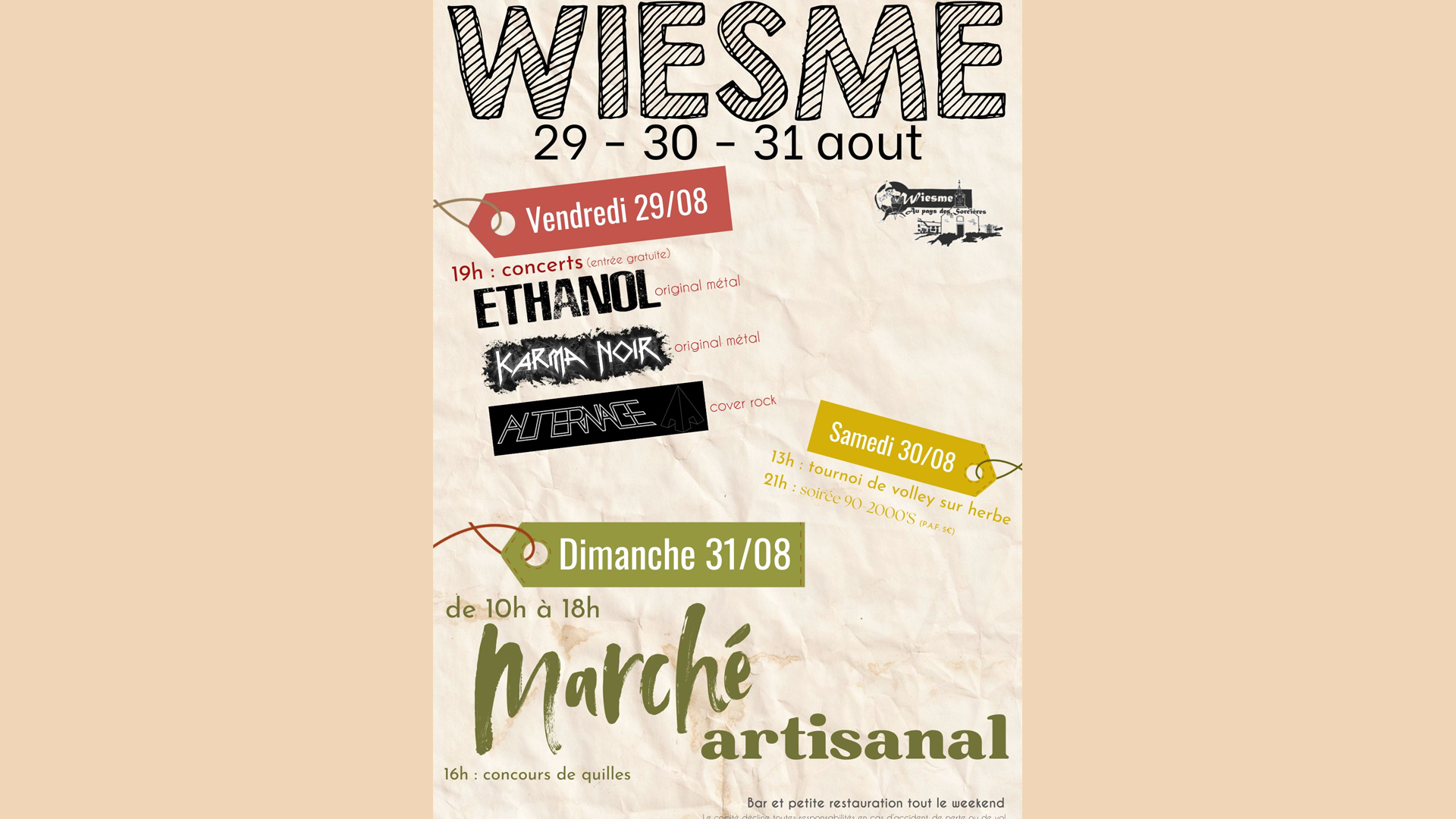 Le village de Wiesme vous ouvre grand ses portes pour sa traditionnelle kermesse, un rendez-vous chaleureux et festif qui réunit petits et grands dans la bonne humeur ! Du 29 au 31 août, venez profiter d’un week-end animé où traditions, convivialité et divertissements seront à l’honneur.