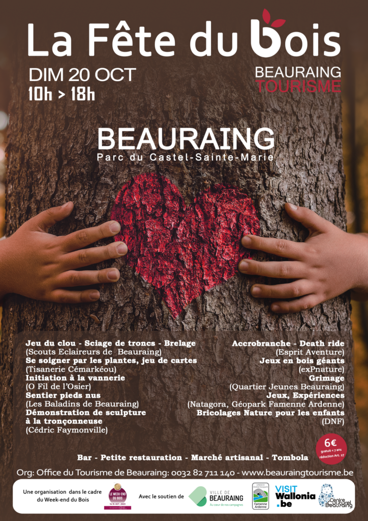 Cette année, la Fête du Bois aura lieu le 20 octobre, dans le parc du Castel Sainte-Marie à Beauraing, de 10h à 18h.
