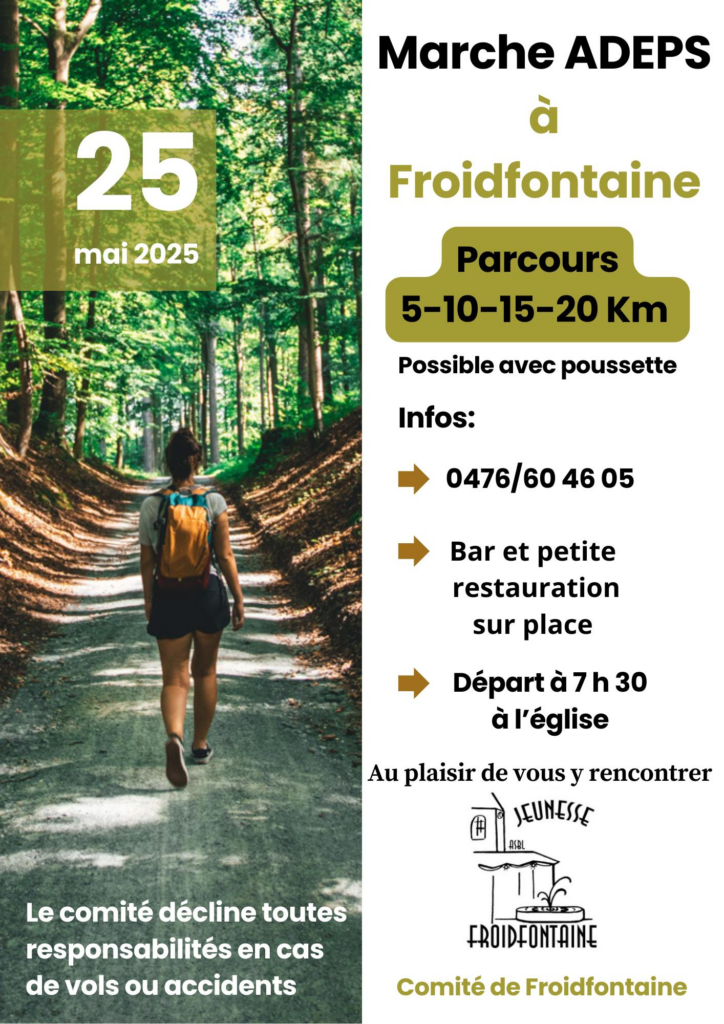 Date : La marche Adeps de Froidfontaine aura lieu le 25/05/2025.
