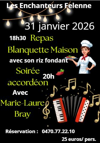 🎶 Dès 20h, laissez-vous emporter par une soirée accordéon pleine d’énergie et d’émotions, animée par Marie-Laure Bray. Une ambiance festive, des airs entraînants, des sourires et peut-être même quelques pas de danse !