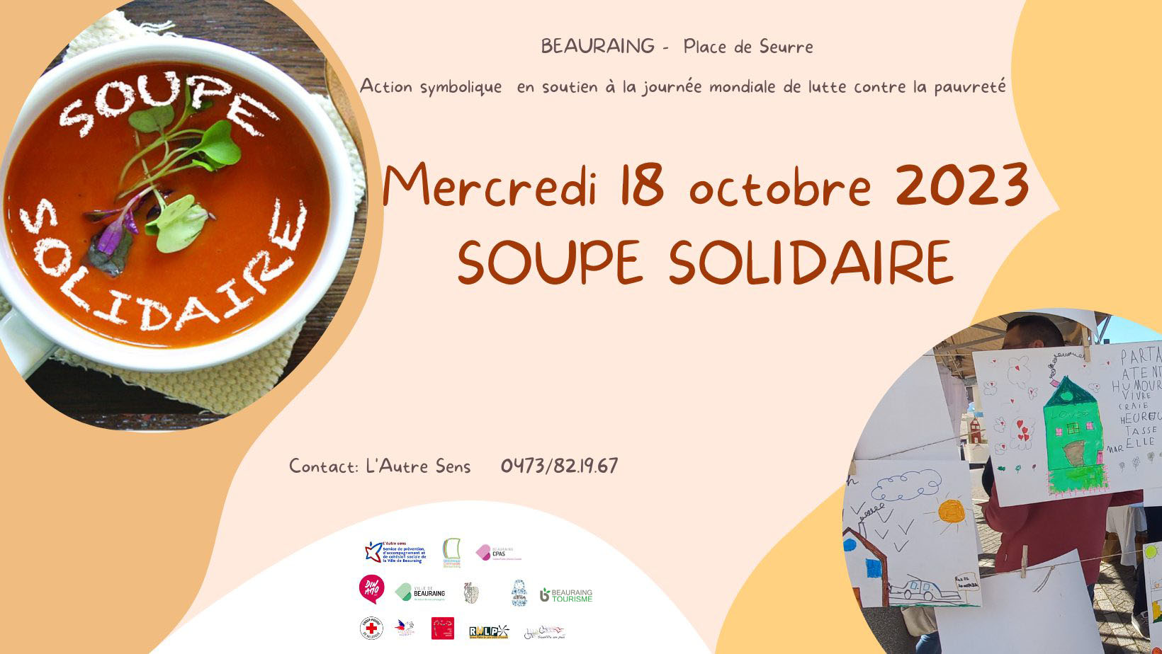L »Autre Sens » vous invite à cette soupe solidaire le 18/10/2023 de 11h à 14h sur la place de Seurre à Beauraing.