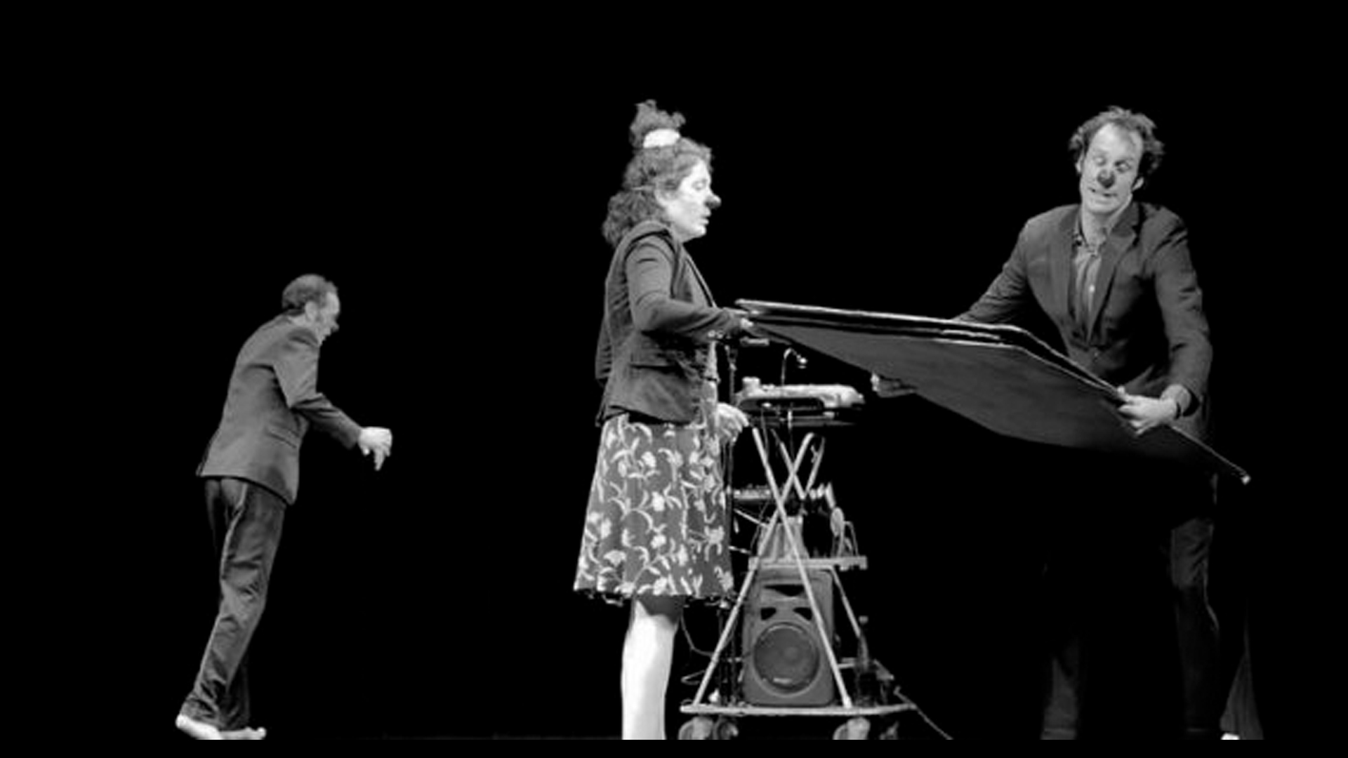 Sans fards, sans réponses, trois clowns s’emparent de cette histoire pour nous raconter la vie, le vivant face à la réalité qui parfois se déchire et nous laisse vacillants.