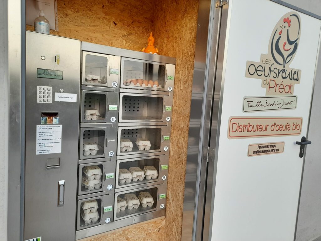 Où acheter leurs œufs ? Vous pouvez acheter leurs œufs bio directement sur place, grâce à un distributeur automatique accessible tous les jours de la semaine, de 6h à 20h et à Le comptoir paysan